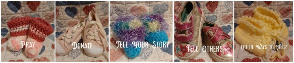 Donating baby shoes is huge! Whether new, used, hand-made, or store-bought, each brings us closer to our goal. Thrift stores are awesome, and there are gobs of patterns online to make your own. For available donation locations, click here.
