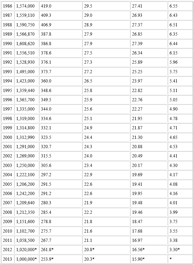 Over 1 million children are lost through pregnancy terminations each year. Below is a graph depicting the year-to-year loss of life.